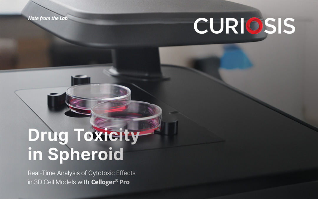 Curiosis researchers captured spheroid cytotoxic responses using CURIOSIS Celloger® Pro time-lapse imaging. Fluorescence imaging of HEK293-GFP spheroids stained with EthD-1 revealed dose-dependent shrinkage and a progressive increase in red fluorescence over time. These findings highlight the value of time-lapse imaging in enhancing drug evaluation within 3D spheroid models.